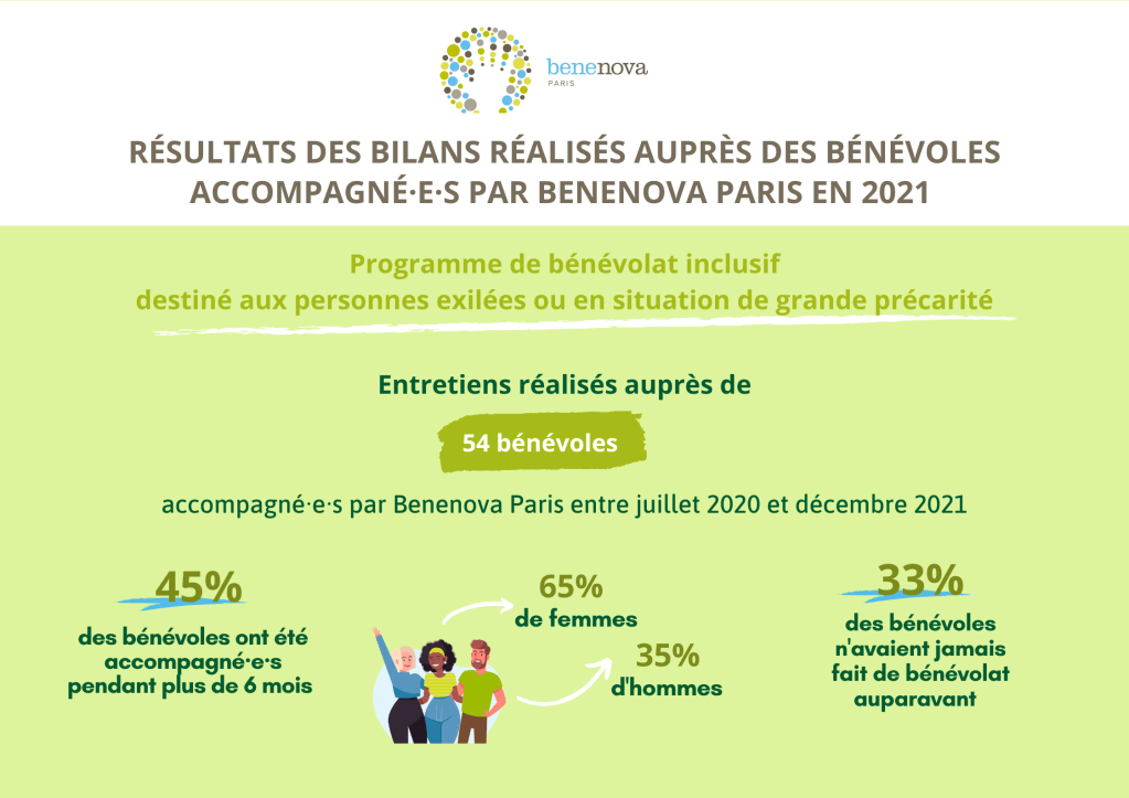 Depuis 2017, Benenova Paris mène un programme de bénévolat inclusif qui vise à accompagner l’engagement des personnes exilées ou en situation de précarité qui souhaitent faire du bénévolat mais ont besoin d’un petit coup de pouce pour passer à l’action.